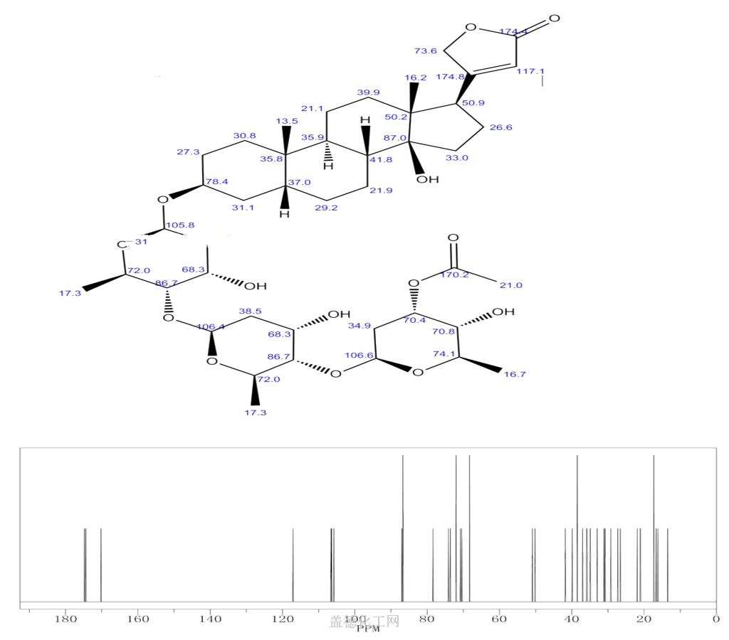 Card-20(22)-enolide,3-[(O-3-O-acetyl-2,6-dideoxy-b-D-ribo-hexopyranosyl-(1®4)-O-2,6-dideoxy-b-D-ribo-hexopyranosyl-(1®4)-2,6-dideoxy-b-D-ribo-hexopyranosyl)oxy]-14-hydroxy-, (3b,5b)-
