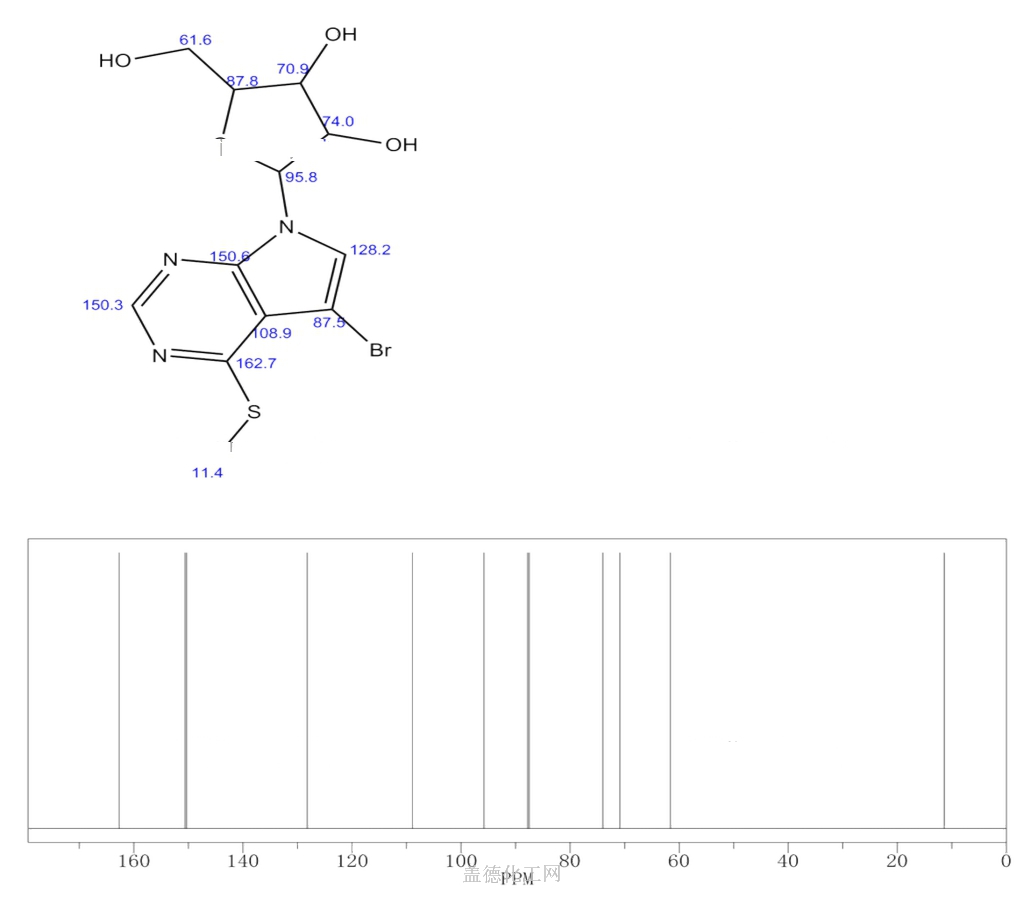 7H-Pyrrolo[2,3-d]pyrimidine,5-bromo-4-(methylthio)-7-b-D-ribofuranosyl-