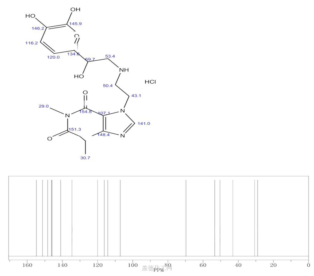 1H-Purine-2,6-dione,7-[2-[[2-(3,4-dihydroxyphenyl)-2-hydroxyethyl]amino]ethyl]-3,7-dihydro-1,3-dimethyl-,hydrochloride (1:1)