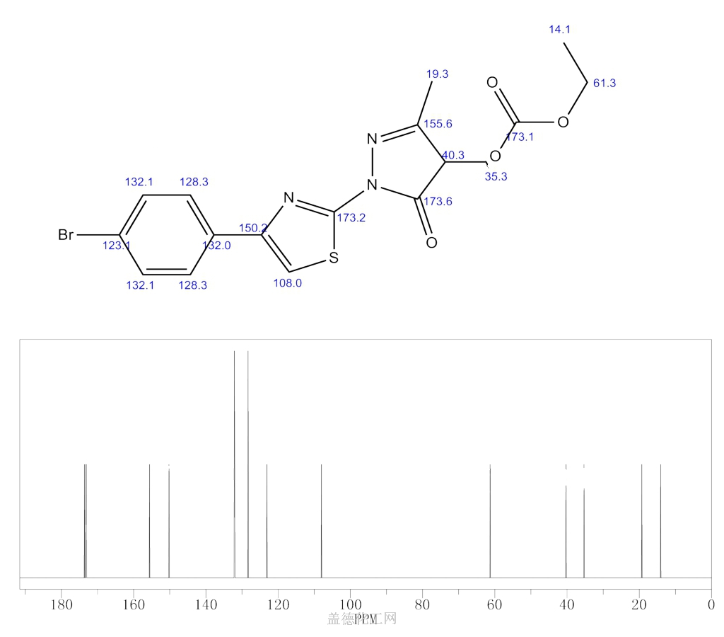 1H-Pyrazole-4-aceticacid, 1-[4-(4-bromophenyl)-2-thiazolyl]-4,5-dihydro-3-methyl-5-oxo-, ethylester