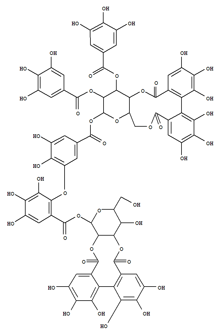 a-D-Glucopyranose, cyclic2,3-[(1S)-4,4',5,5',6,6'-hexahydroxy[1,1'-biphenyl]-2,2'-dicarboxylate]1-[2-[5-[[[4,6-O-[[(1S)-4,4',5,5',6,6'-hexahydroxy[1,1'-biphenyl]-2,2'-diyl]dicarbonyl]-2,3-bis-O-(3,4,5-trihydroxybenzoyl)-b-D-glucopyranosyl]oxy]carbonyl]-2,3-dihydroxyphenoxy]-3,4,5-trihydroxybenzoate](9CI)