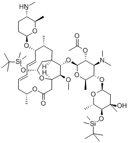 Leucomycin V,18-deoxo-3-deoxy-9-O-[5-(dimethylamino)tetrahydro-6-methyl-2H-pyran-2-yl]-4B-O-[(1,1-dimethylethyl)dimethylsilyl]-18-[[(1,1-dimethylethyl)dimethylsilyl]oxy]-3,18-epoxy-,2B-acetate, [9(2R,5S,6R)]- (9CI)