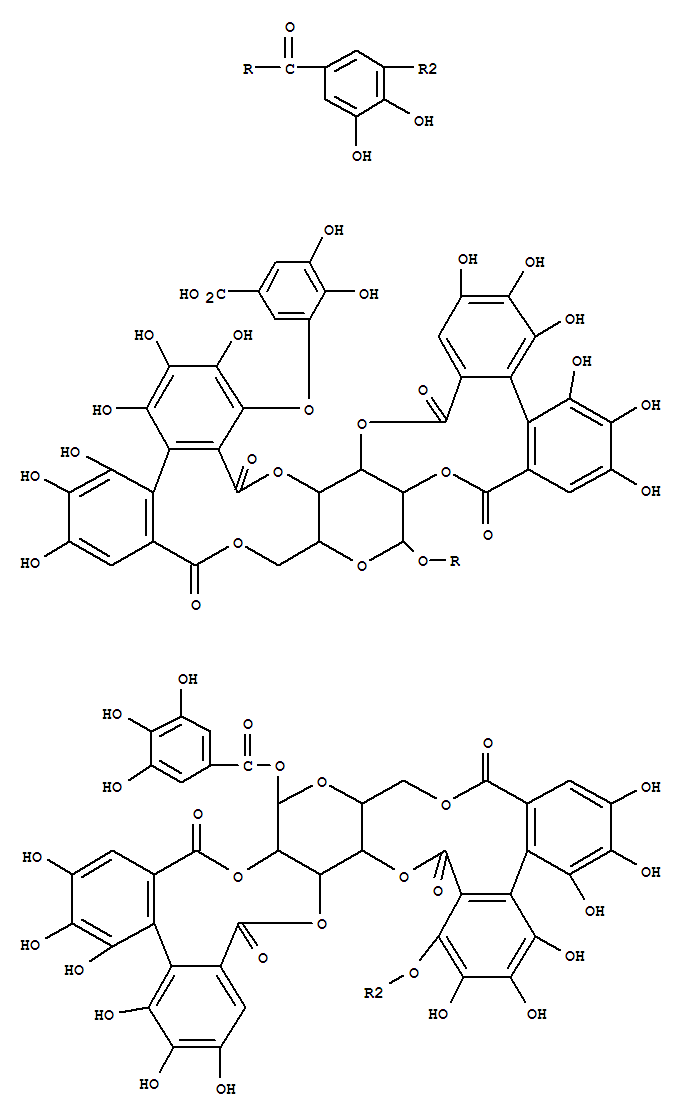D-Glucose, cyclic4,6-[(1S)-4,4',5,5',6,6'-hexahydroxy[1,1'-biphenyl]-2,2'-dicarboxylate]3-(3,4,5-trihydroxybenzoate), 2®4-ester with b-D-glucopyranose cyclic 3®2':6®2-[(1R)-4,5-bis(6-carboxy-2,3,4-trihydroxyphenoxy)-4',5',6,6'-tetrahydroxy[1,1