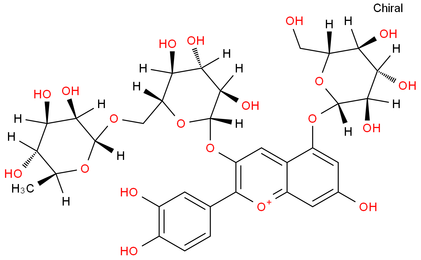 1-Benzopyrylium,3-[[6-O-(6-deoxy-a-L-mannopyranosyl)-b-D-glucopyranosyl]oxy]-2-(3,4-dihydroxyphenyl)-5-(b-D-glucopyranosyloxy)-7-hydroxy-(9CI)