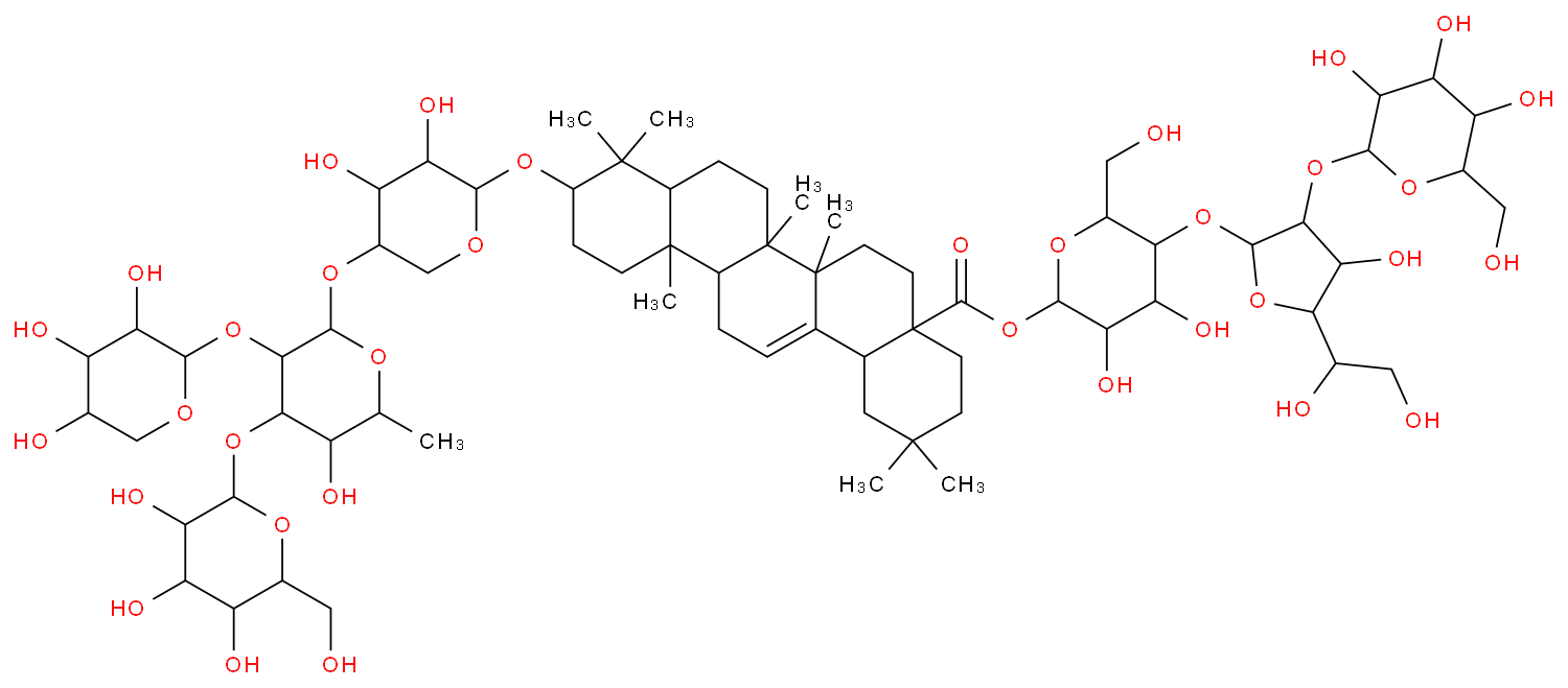 Olean-12-en-28-oicacid, 3-[(O-b-D-glucopyranosyl-(1®3)-[O-b-D-xylopyranosyl-(1®2)]-O-6-deoxy-a-L-mannopyranosyl-(1®4)-b-D-xylopyranosyl)oxy]-, O-D-glucopyranosyl-(1®2)-O-b-D-glucofuranosyl-(1®4)-b-D-glucopyranosyl ester, (3b)- (9CI)