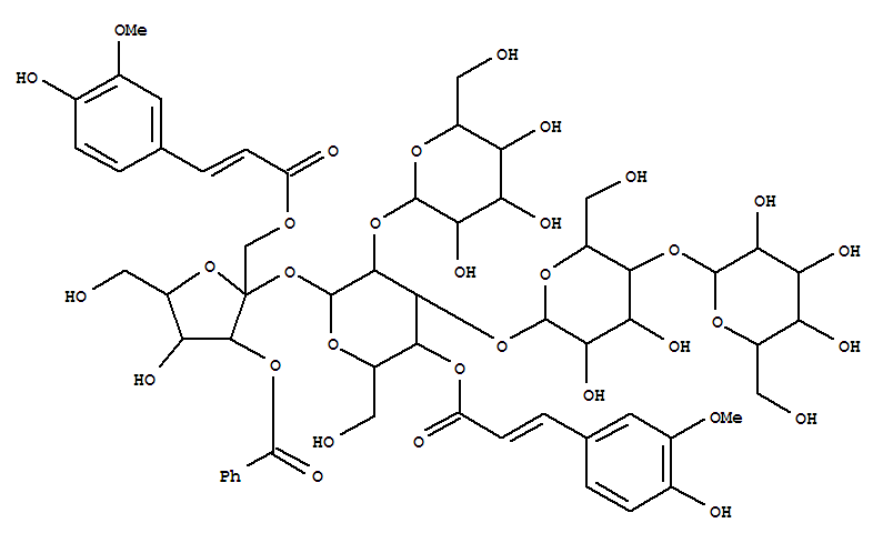 a-D-Glucopyranoside,3-O-benzoyl-1-O-[(2E)-3-(4-hydroxy-3-methoxyphenyl)-1-oxo-2-propenyl]-b-D-fructofuranosyl O-b-D-glucopyranosyl-(1®2)-O-[O-b-D-glucopyranosyl-(1®4)-b-D-glucopyranosyl-(1®3)]-,4-[(2E)-3-(4-hydroxy-3-methoxyphenyl)-2-propenoate] (9CI)