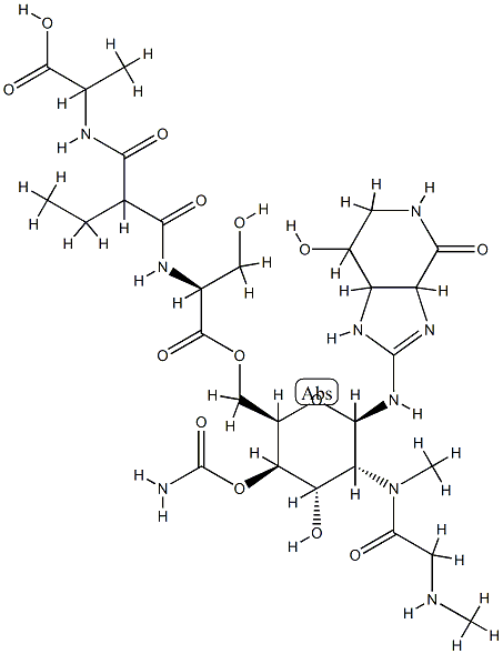 L-Serine,N-[2-[[(1-carboxyethyl)amino]carbonyl]-1-oxobutyl]-, 6'-ester with2-[[4-O-(aminocarbonyl)-2-deoxy-2-[methyl[(methylamino)acetyl]amino]-b-D-gulopyranosyl]amino]-1,3a,5,6,7,7a-hexahydro-7-hydroxy-4H-imidazo[4,5-c]pyridin-4-one(9CI)
