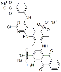 2-Anthracenesulfonicacid,1-amino-4-[[3-[[4-chloro-6-[(3-sulfophenyl)amino]-1,3,5-triazin-2-yl]amino]-2,4,6-trimethyl-5-sulfophenyl]amino]-9,10-dihydro-9,10-dioxo-,sodium salt (1:3)
