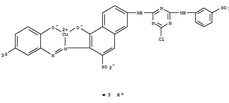 Cuprate(3-),[7-[[4-chloro-6-[(3-sulfophenyl)amino]-1,3,5-triazin-2-yl]amino]-4-(hydroxy-kO)-3-[[2-(hydroxy-kO)-5-sulfophenyl]azo-kN1]-2-naphthalenesulfonato(5-)]-,trihydrogen (9CI)