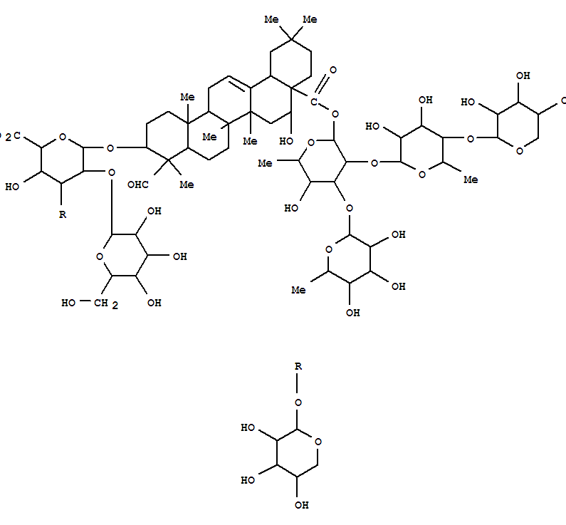 b-D-Glucopyranosiduronic acid, (3b,4a,16a)-28-[(O-6-deoxy-a-L-mannopyranosyl-(1®3)-O-[O-b-D-xylopyranosyl-(1®4)-6-deoxy-a-L-mannopyranosyl-(1®2)]-6-deoxy-b-D-glucopyranosyl)oxy]-16-hydroxy-23,28-dioxoolean-12-en-3-ylO-a-L-arabinopyranosyl-(1®3)-O-[b-D-galactopyranosyl-(1®2)]- (9CI)