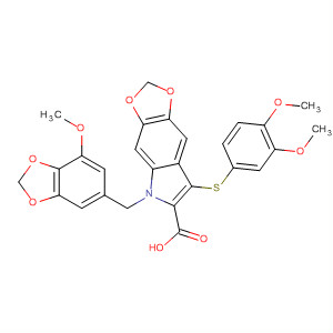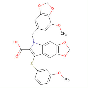 5H-1,3-Dioxolo[4,5-f]indole-6-carboxylic acid,5-[(7-methoxy-1,3-benzodioxol-5-yl)methyl]-7-[(3-methoxyphenyl)thio]-