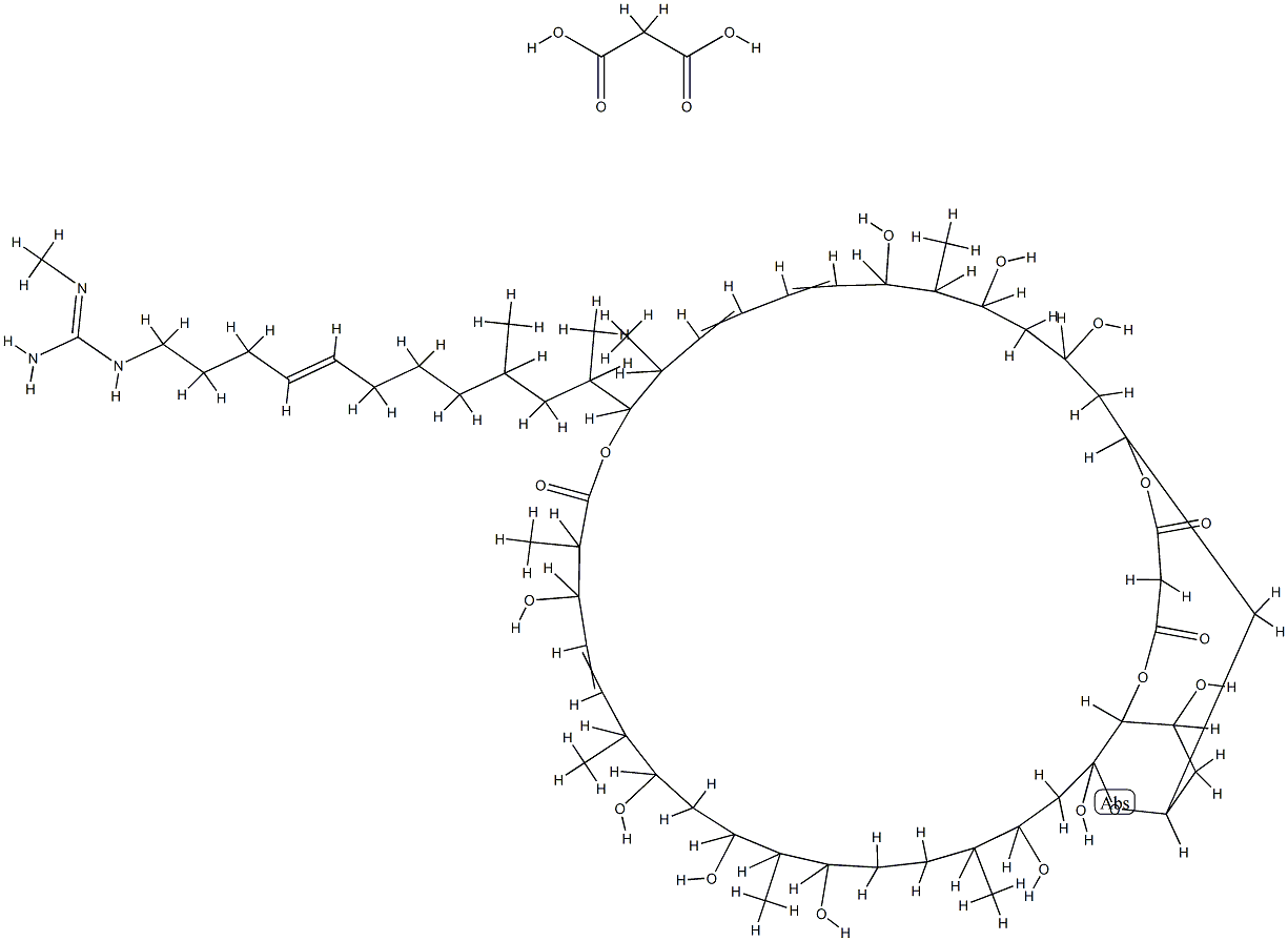 Propanedioic acid,esters,5,7,9,19,23,25,27,31,33,- 35(or 5,7,9,19,23,25,27,31,33,34)-decahydroxy- 15-[11-[[imino(methylamino)methyl]amino]-1,- 3-dimethyl-7-undecenyl]-8,14,18,22,26,30- hexamethyl-17-oxo-16,37-dioxabicyclo[31.3.1]- heptatriaconta-10,12,20-trien-3,34(or 3,35)-diyl ester