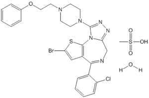 6H-Thieno(3,2-f)(1,2,4)triazolo(4,3-a)(1,4)diazepine, 2-bromo-4-(2-chlorophenyl)-9-(4-(2-phenoxyethyl)-1-piperazinyl)-, monomethanesulfonate, monohydrate