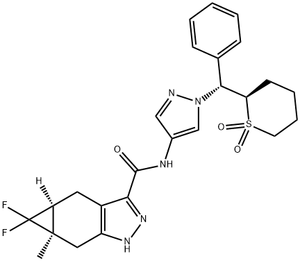 (4aS,5aR)-N-[1-[(R)-[(2R)-1,1-dioxothian-2-yl]-phenylmethyl]pyrazol-4-yl]-5,5-difluoro-5a-methyl-1,4,4a,6-tetrahydrocyclopropa[f]indazole-3-carboxamide