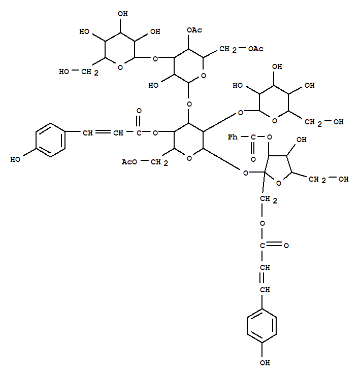 a-D-Glucopyranoside,3-O-benzoyl-1-O-[(2E)-3-(4-hydroxyphenyl)-1-oxo-2-propenyl]-b-D-fructofuranosyl O-b-D-glucopyranosyl-(1®2)-O-[O-b-D-glucopyranosyl-(1®3)-4,6-di-O-acetyl-b-D-glucopyranosyl-(1®3)]-, 6-acetate4-[(2E)-3-(4-hydroxyphenyl)-2-propenoate] (9CI)