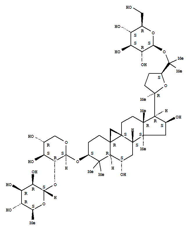 b-D-Glucopyranoside, (3b,6a,16b,20R,24S)-3-[[2-O-(6-deoxy-a-L-mannopyranosyl)-b-D-xylopyranosyl]oxy]-20,24-epoxy-6,16-dihydroxy-9,19-cyclolanostan-25-yl(9CI)