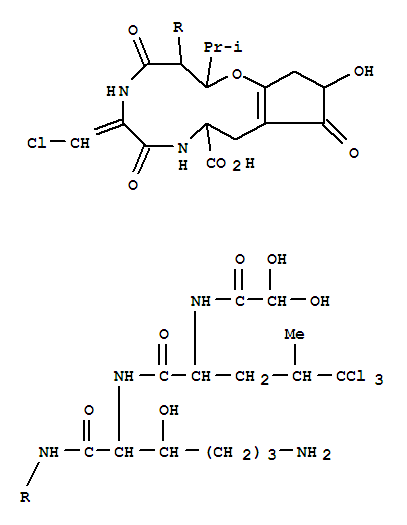 Alanine,5,5,5-trichloro-N-(dihydroxyacetyl)leucyl-3-hydroxylysyl-3-hydroxyleucyl-3-chloro-2,3-didehydroalanyl-3-(2,4-dihydroxy-5-oxo-1-cyclopenten-1-yl)-,cyclic (3®52)-ether (9CI)