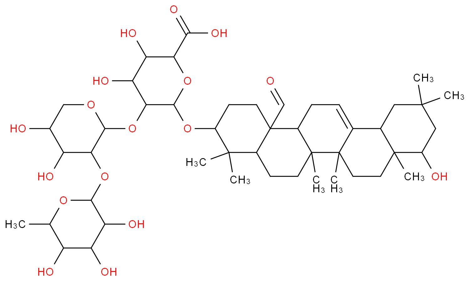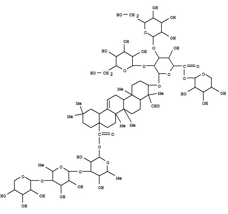 b-D-Glucopyranosiduronic acid, (3b,4a)-23,28-dioxo-28-[(O-b-D-xylopyranosyl-(1®4)-O-6-deoxy-a-L-mannopyranosyl-(1®3)-6-deoxy-b-D-galactopyranosyl)oxy]olean-12-en-3-yl O-b-D-galactopyranosyl-(1®2)-O-[b-D-galactopyranosyl-(1®3)]-, a-L-arabinopyranosyl ester (9CI)