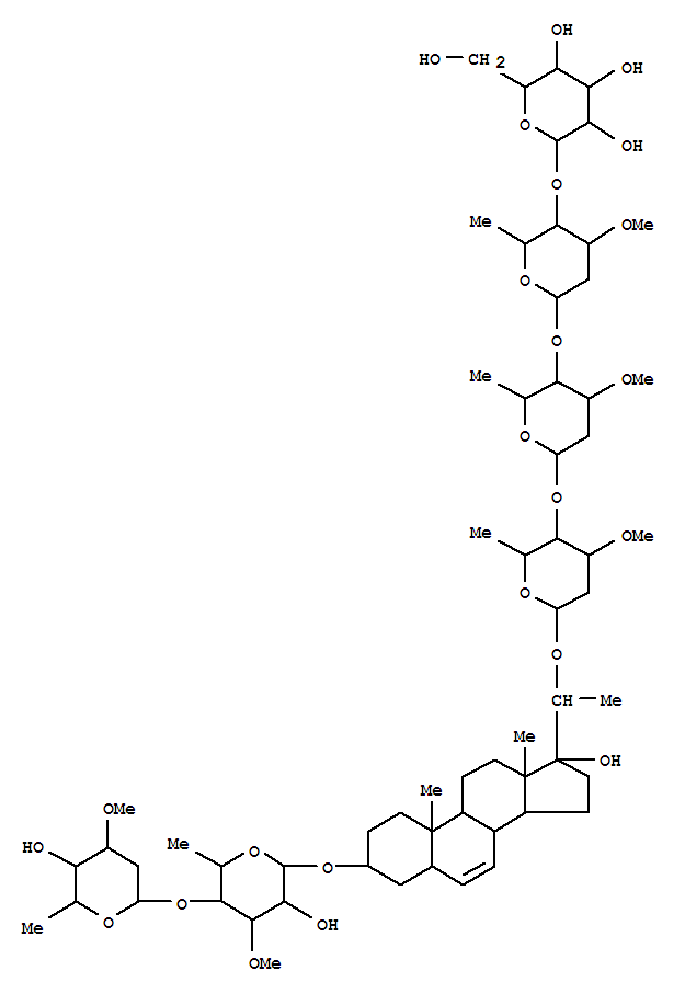 b-D-Galactopyranoside, (3b,5a,20S)-20-[(O-b-D-glucopyranosyl-(1®4)-O-2,6-dideoxy-3-O-methyl-b-D-ribo-hexopyranosyl-(1®4)-O-2,6-dideoxy-3-O-methyl-b-D-arabino-hexopyranosyl-(1®4)-2,6-dideoxy-3-O-methyl-b-D-arabino-hexopyranosyl)oxy]-17-hydroxypregn-6-en-3-yl6-deoxy-4-O-(2,6-dideoxy-3-O-methyl-a-L-xylo-hexopyranosyl)-3-O-methyl- (9CI)